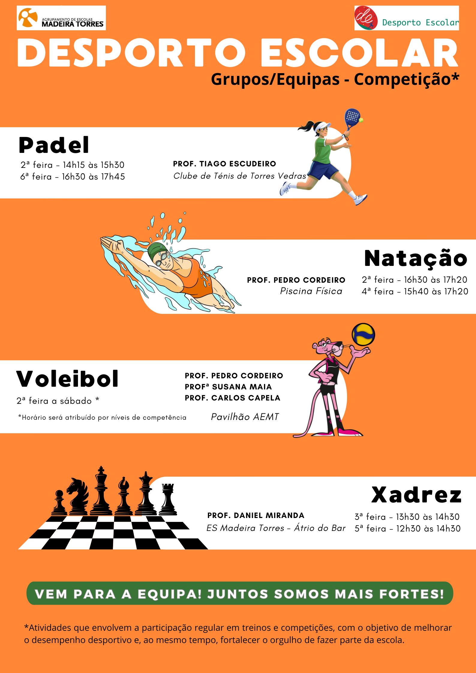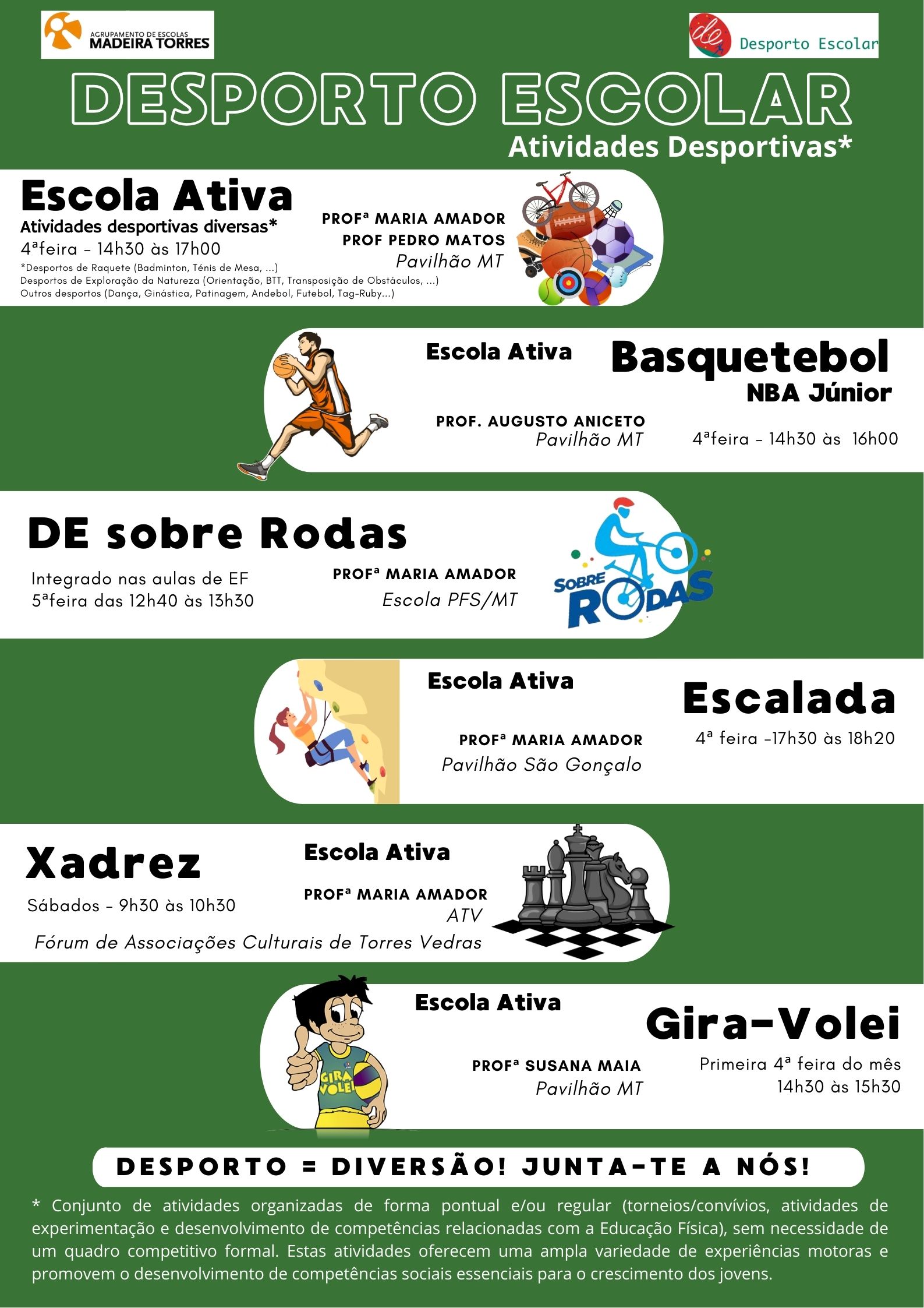 Junta-te ao Desporto Escolar e vem fazer parte de um ambiente saudável, ativo e inclusivo. Mostra o teu talento, supera-te a cada dia e, acima de tudo, diverte-te enquanto cresces como atleta e como pessoa!